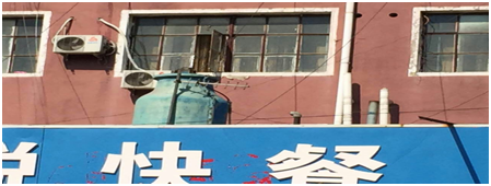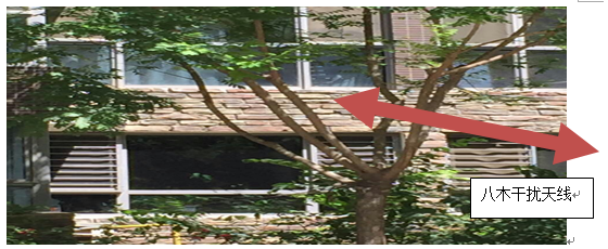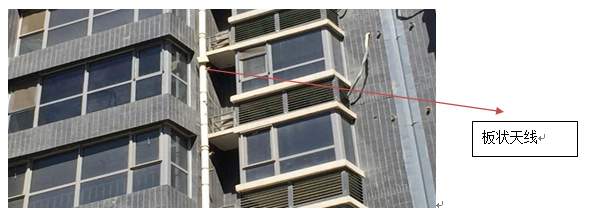 緩慢轉(zhuǎn)動定向天線觀測頻譜變化情況,發(fā)現(xiàn)該樓二單元中間樓層信號最強,初步確認干擾源位置。經(jīng)觀測,發(fā)現(xiàn)該樓二單元中間樓層排水管上懸掛一白色板狀物,應(yīng)是天線,見圖2.