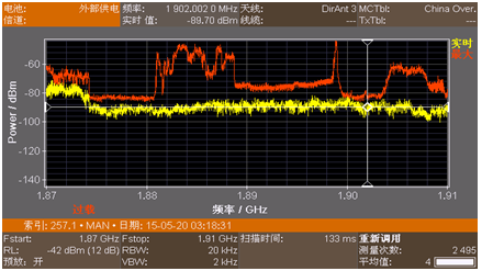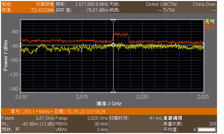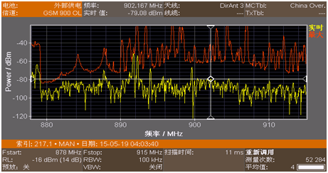 測試背景:根據(jù)移動公司后臺軟件監(jiān)控統(tǒng)計結(jié)果,在燕郊夏威夷花園二期附近存在明顯的GSM和LTE干擾信號
