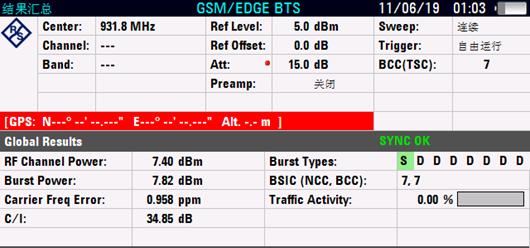 隨后通過使用我公司GSM-R干擾監(jiān)測儀對現(xiàn)場測試環(huán)境進行小區(qū)掃描可以發(fā)現(xiàn)當前鐵路GSM-R使用小區(qū)主BCCH頻點為1004,其小區(qū)位置為LAC:22787、CI:35;小區(qū)掃描結果如下圖所示:
