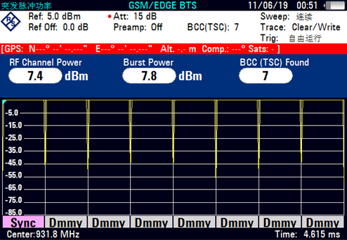 (4)、發(fā)射機射頻載波發(fā)射功率時間包絡測試