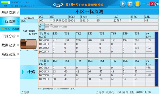 通過此次現(xiàn)場對GSM-R無線干擾問題進行測試,我公司研發(fā)的GSM-R干擾監(jiān)測儀對現(xiàn)場GSM-R上下行干擾均能進行準確的監(jiān)測,發(fā)現(xiàn)受干擾的頻點及干擾嚴重程度,并且該設備為便攜式平板設備,對工程師現(xiàn)場測試和判斷GSM-R干擾情況更為簡便,可以作為現(xiàn)場進行GSM-R干擾問題判斷的有力工具。